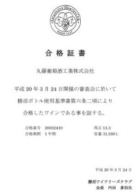 勝沼ボトル審査会合格ワイン。