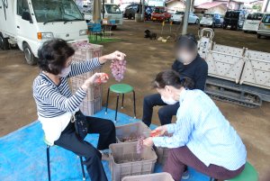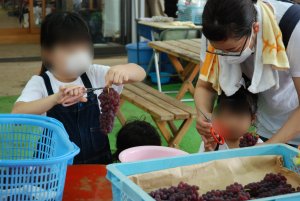 | 収穫したぶどうの手入れ作業です。 |